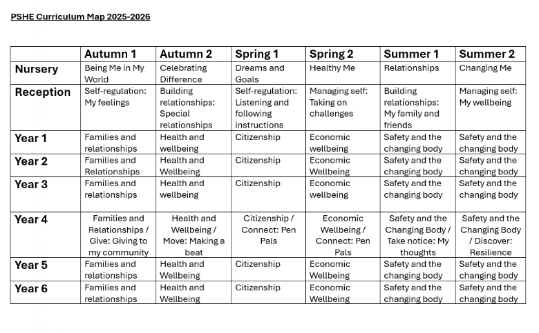 PSHE Curriculum Map