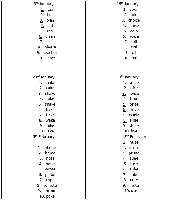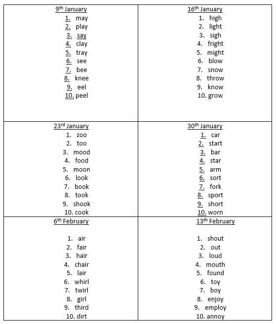 All children start phonics by being taught these sounds in this order when in Reception. Each day, the sounds are revisited and reviewed to check for accuracy.