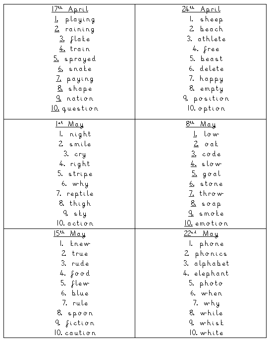 Throughout Year 1, your child will also be learning some Set 3 sounds, these are below as follows: